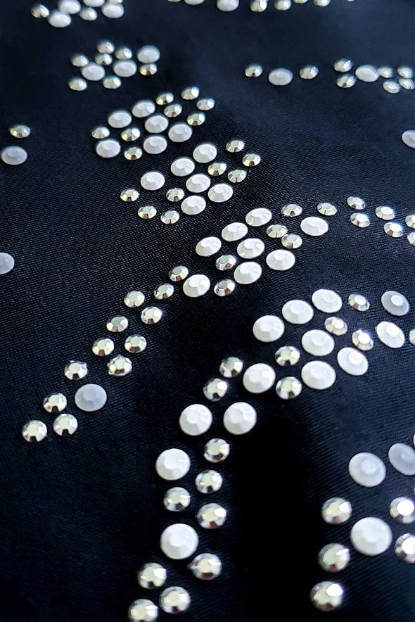 يتميز هذا الثوب بزخارف من الكريستال. إنه رائع، لكنه يتطلب القليل من العناية الإضافية لمنع التلف. يُرجى الاطلاع على تعليمات العناية الخاصة بنا للحصول على التفاصيل. القليل من العناية والاهتمام يقطع شوطًا طويلاً!