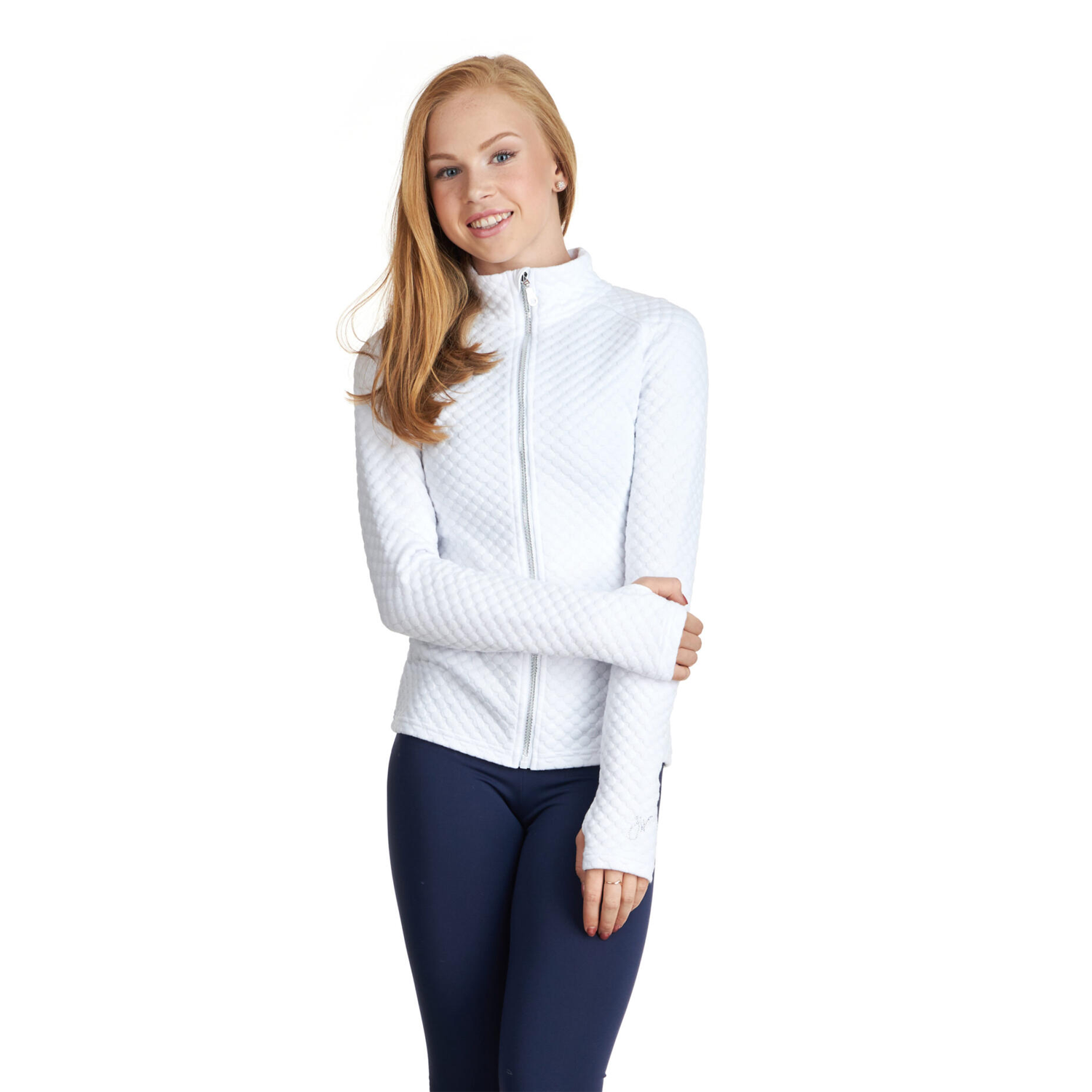 Chic Jacket is the perfect choice for athletes who appreciate long-lasting styles and a flattering fit. It features a thumbhole for secure movement and a zipper protection at the upper end of the collar, so your neck is kept safe. Its ideal flexibility makes it fit perfectly to the body, and its special spotty quilting and metallic glow zippers elevates it to an elegant level for practice and competitions. The JIV logo made from rhinestones adds the ultimate touch to the left sleeve end.